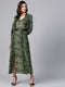 Animal Print V-Neck Style Maxi Dress With Embellished Brotch At The Waistline And Lined Bottom Hemline.
