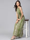 Animal Print Maxi Dress With Raglan Embellished Neckline And Pleated Bottom.