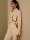 The CAMILLE CO-ORD SET offers effortless style and comfort. Crafted from a luxurious Dull Crepe Satin Fabric, this cream co-ord features rust piping for a touch of contrast. it offers the perfect fit for sizes.