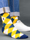Shop the best Denim Argyle Edition SockSoho Men Socks - Premium Compact Combed Cotton in Blue, White, and Yellow color pattern. Elevate your style with these fashionable and comfortable argyle socks. Perfect for any occasion, these premium socks ensure unmatched softness and durability.