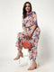 Digital Printed Top With Shimmer Sheer Patch And Matching Pants Set