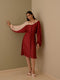 Elevate your style with our stunning Evelyn Shirt Dress! This unique piece combines contemporary design with classic elegance, featuring a bold color contrast that sets it apart. The dress boasts a deep crimson body complemented by soft beige sleeves and a matching collar, creating a striking visual appeal.
