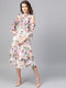 Printed Midi Dress With Ruffles And Elasticised Waistline And Fully Lined Body.