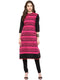 Pannkh Printed Kurti With Chinese Neckband, Conceal Zipper At Back Along With Contrasting Black Sleeves And Highlighted Pom -Pom At The Bottom.