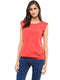 Pannkh Sleeveless polyester top with a fake shoulder-tab . Diagonal placket with golden stick-ons and an elasticized bottom giving a relaxed fit.