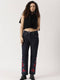 Women's dark indigo straight jeans that sit high on the waist with narrow leg openings. They fit fuller through the hip and thigh and run straight from hip to ankle. They feature a deep green back pocket that says - ‘I carry ~3600 litres of saved water in this pocket.’