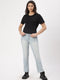 Women's light indigo straight jeans that sit low on waist with narrow leg openings. They fit fuller through the hip and thigh and run straight from hip to ankle. They feature Un Denim's signature GreenPocket™ that says - ‘This is not a green pocket, it’s a protest sign, against overproduction, overconsumption and the destruction of our planet, our only home.’
