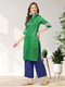 | The kurta features intricate embroidery on the placket and sleeves, which adds to the elegance of the outfit. The contrasting pants complement the kurta, creating a stylish look. The outfit is made of comfortable fabric, ensuring ease of movement while also making you look fashionable. Material: Art Silk Base Color : Green Color : Blue Care Instruction : Hand Wash Separately Sleeves : 3/4 Sleeves Neckline : Collared Neck Pattern : Embroidered Product Highlight : Festive Placket Embroidered Kurta With Contrasting Pants Disclaimer: The product color may vary from screen resolution of the device. |