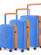 This set includes a cabin (20"), medium (24"), and large (28") suitcase made from unbreakable polypropylene. The cabin bag holds up to 8 kg, the medium suitcase up to 15 kg, and the large suitcase up to 20 kg, offering style and durability for any journey.