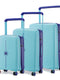 This set includes a cabin (20"), medium (24"), and large (28") suitcase made from unbreakable polypropylene. The cabin bag holds up to 8 kg, the medium suitcase up to 15 kg, and the large suitcase up to 20 kg, offering style and durability for any journey.